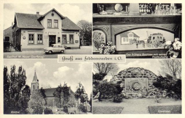 Postkarte anlässlich des 50-järigen Bestehens des Gasthof Kaper (Dorfkrug), Poststraße 1956